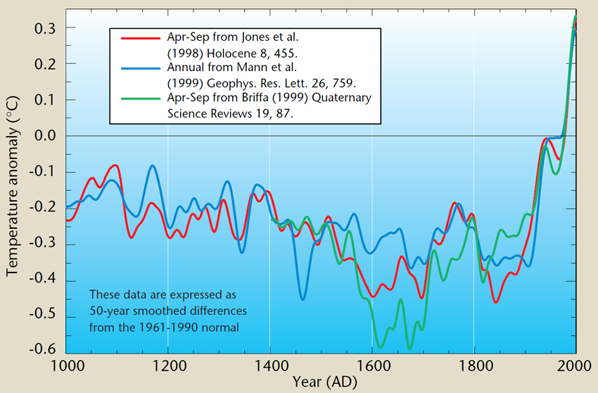 The ‘decline’ in this set of tree-ring data should not be taken to mean that there is any problem with the instrumental temperature data. As for the tree-ring decline, various manifestations of this phenomenon have been discussed by numerous authors, and its implications are clearly signposted in Chapter 6 of the IPCC AR4 report.