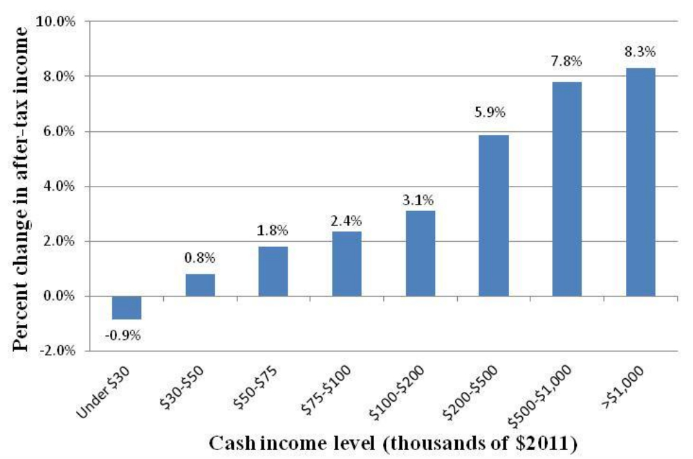 "The key intuition behind our central result is that, because the total value of the available tax expenditures (once tax expenditures for capital income are excluded) going to high-income taxpayers is smaller than the tax cuts that would accrue to high-income taxpayers, high-income taxpayers must necessarily face a lower net tax burden. As a result, maintaining revenue neutrality mathematically necessitates a shift in the tax burden of at least $86 billion away from high-income taxpayers onto lower- and middle-income taxpayers. This is true even under the assumption that the maximum amount of revenue possible is obtained from cutting tax expenditures for high-income households."