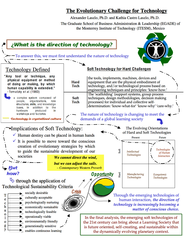 | The Evolutionary Challenge for Technology Question1 #379859 In the final analysis, the emerging soft technologies of the 21st century can bring about a Learning Society that is future-oriented , self-creating, and sustainable within the dynamically evolving planetary context. |